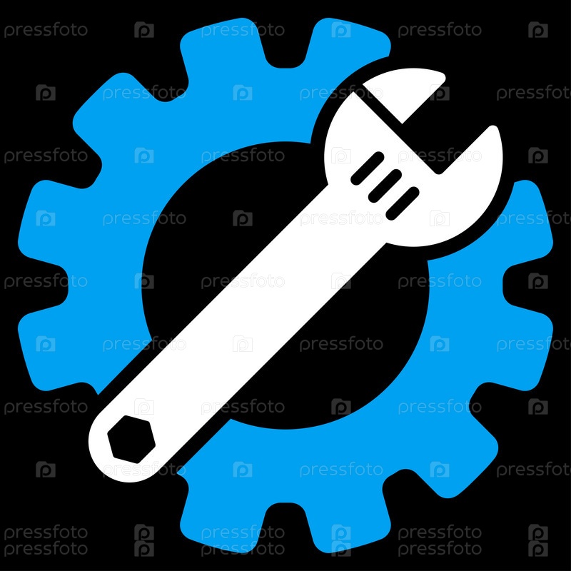 Инструменты для обслуживания растровых значок. Стиль является биколор плоский символ, синий и белый цвета, закругленные углы, черный фон
