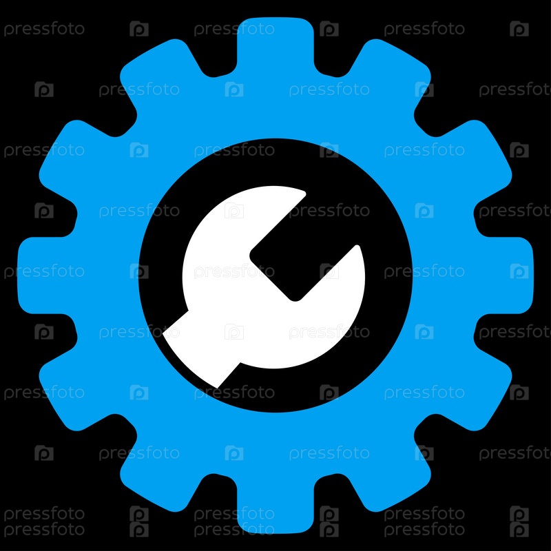 Инструменты для обслуживания растровых значок. Стиль является биколор плоский символ, синий и белый цвета, закругленные углы, черный фон