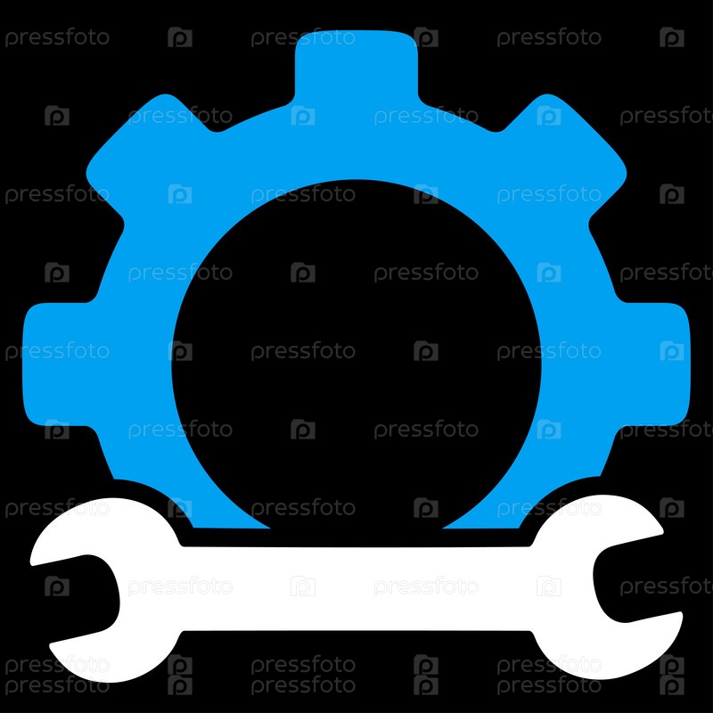 Инструменты для обслуживания растровых значок. Стиль является биколор плоский символ, синий и белый цвета, закругленные углы, черный фон