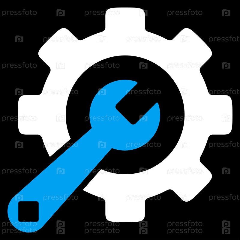 Инструменты для обслуживания растровых значок. Стиль является биколор плоский символ, синий и белый цвета, закругленные углы, черный фон
