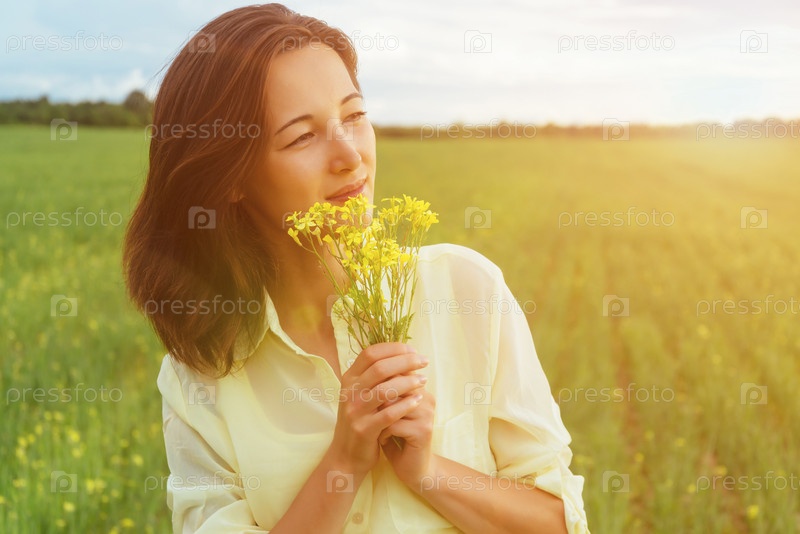 Женщина с букетом цветов