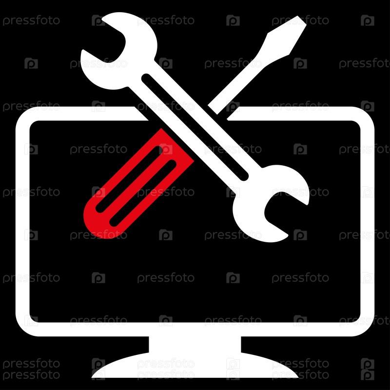 Компьютер значок растровых инструментов. Стиль является биколор плоский символ, красный и белый цвета, закругленные углы, черный фон