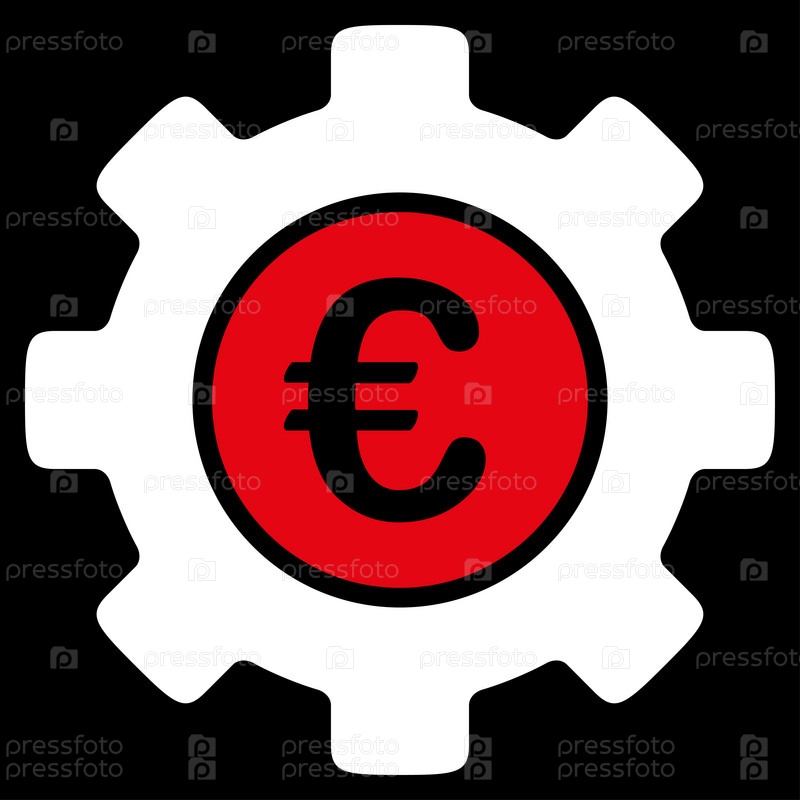 Евро развития растровых значок. Стиль является биколор плоский символ, красный и белый цвета, закругленные углы, черный фон