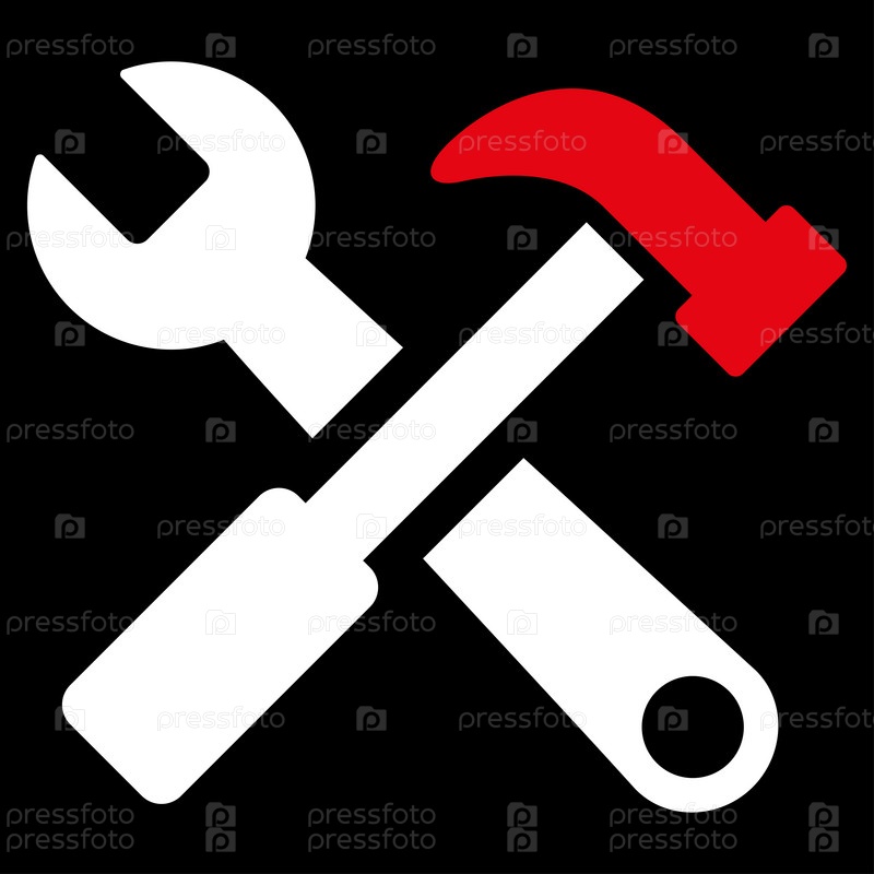 Молоток и растровых инструментов. Стиль является биколор плоский символ, красный и белый цвета, закругленные углы, черный фон