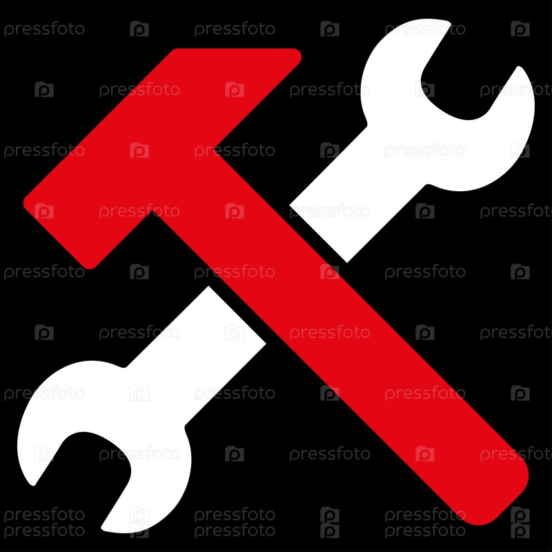 Молоток и растровых инструментов. Стиль является биколор плоский символ, красный и белый цвета, закругленные углы, черный фон