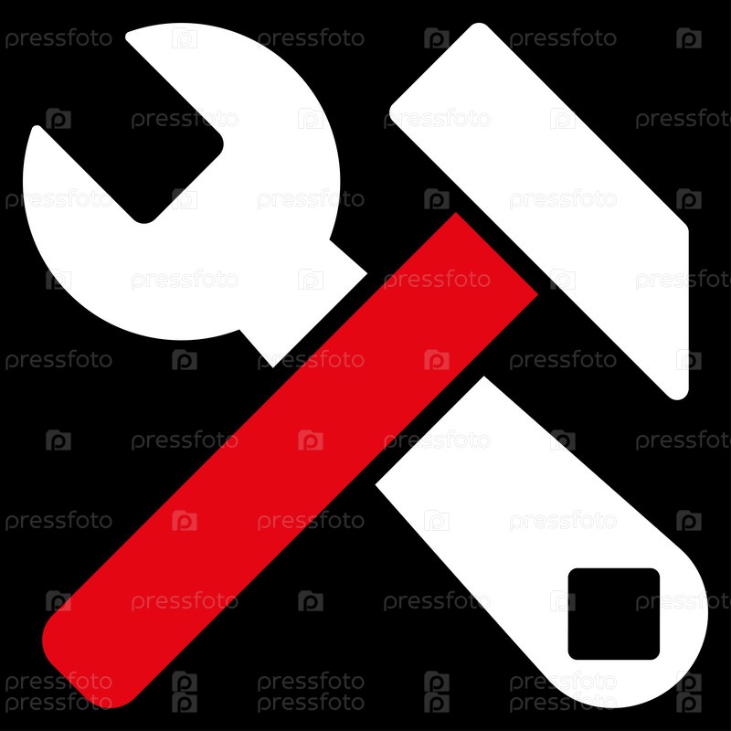 Молоток и растровых инструментов. Стиль является биколор плоский символ, красный и белый цвета, закругленные углы, черный фон