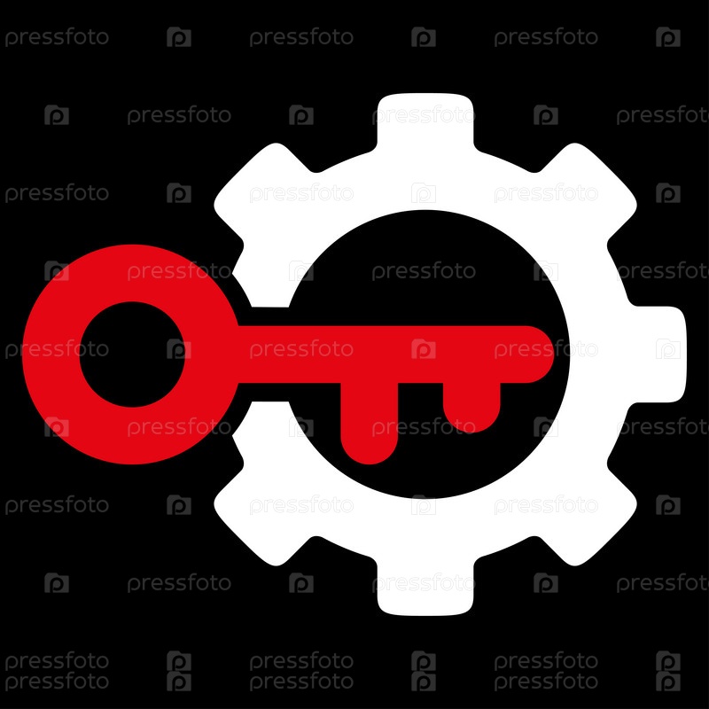 Параметры ключа растровых значок. Стиль является биколор плоский символ, красный и белый цвета, закругленные углы, черный фон