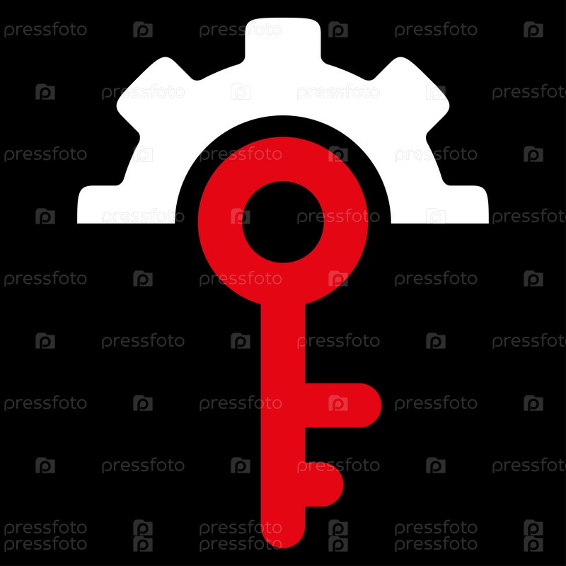 Параметры ключа растровых значок. Стиль является биколор плоский символ, красный и белый цвета, закругленные углы, черный фон