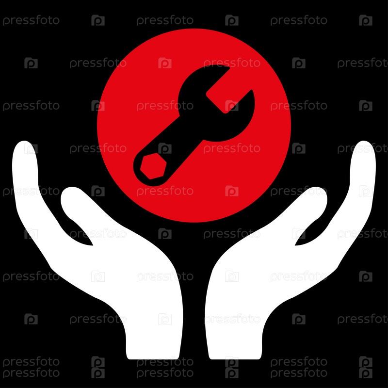 Значок растровое обслуживания. Стиль является биколор плоский символ, красный и белый цвета, закругленные углы, черный фон