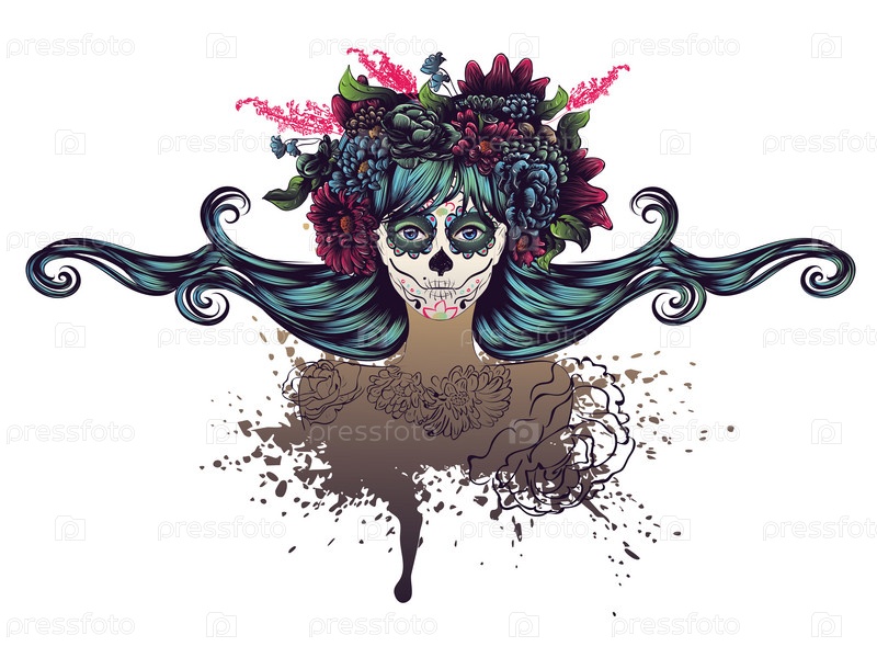 Девушка-череп в цветок Корона