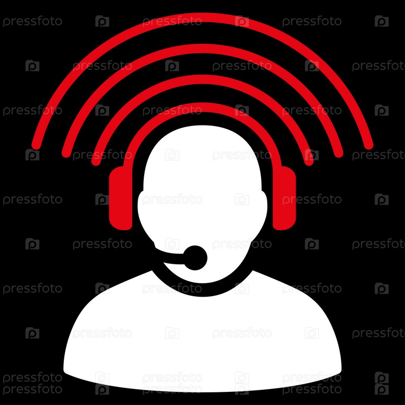 Значок оператора сигнала растров. Стиль является биколор плоский символ, красный и белый цвета, закругленные углы, черный фон