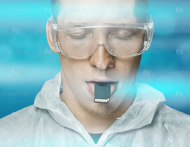 Молодой человек с картой памяти на языке
