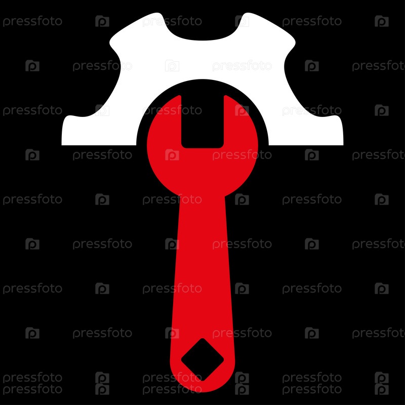 Инструменты для обслуживания растровых значок. Стиль является биколор плоский символ, красный и белый цвета, закругленные углы, черный фон