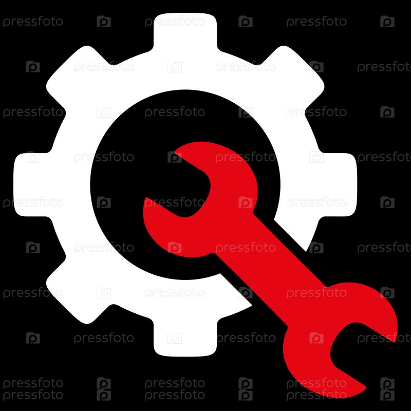 Инструменты для обслуживания растровых значок. Стиль является биколор плоский символ, красный и белый цвета, закругленные углы, черный фон