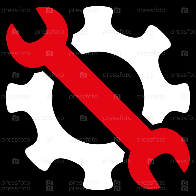 Инструменты для обслуживания растровых значок. Стиль является биколор плоский символ, красный и белый цвета, закругленные углы, черный фон
