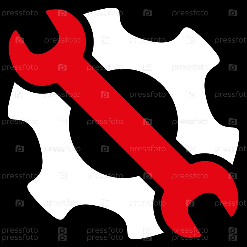 Инструменты для обслуживания растровых значок. Стиль является биколор плоский символ, красный и белый цвета, закругленные углы, черный фон