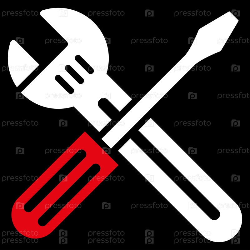 Гаечный ключ и отвертку растровых значок. Стиль является биколор плоский символ, красный и белый цвета, закругленные углы, черный фон
