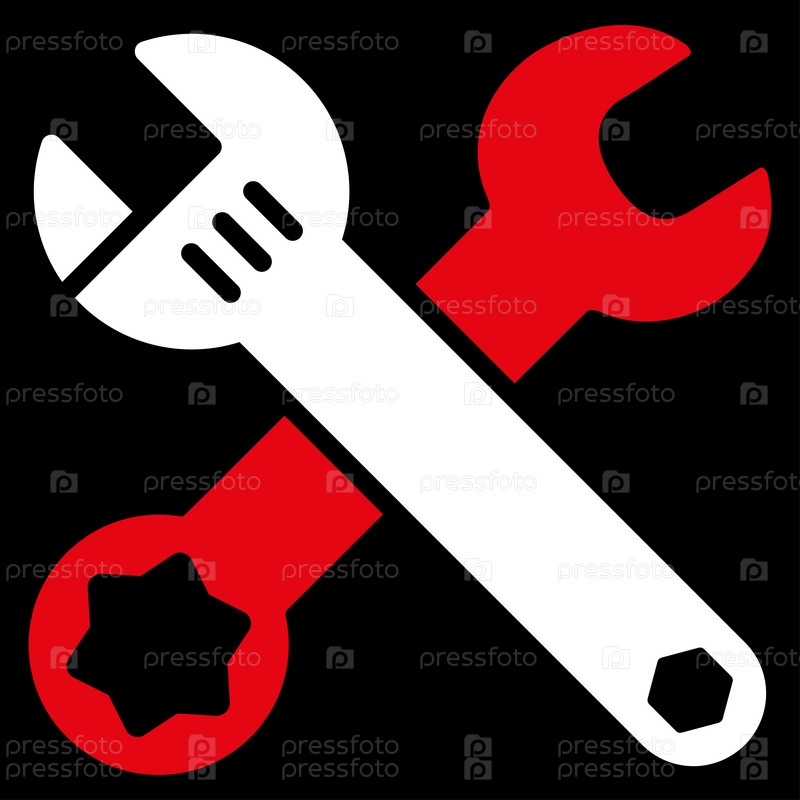 Растровые значок гаечного ключа. Стиль является биколор плоский символ, красный и белый цвета, закругленные углы, черный фон