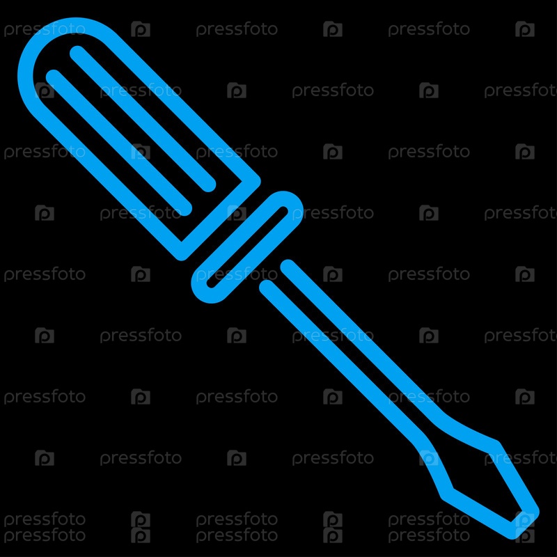 Контур отвертки растровых значок. Стиль является плоской символ, синий цвет, закругленные углы, черный фон