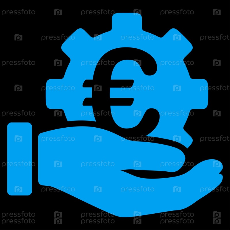Евро службы развития растровых значок. Стиль является плоской символ, синий цвет, закругленные углы, черный фон