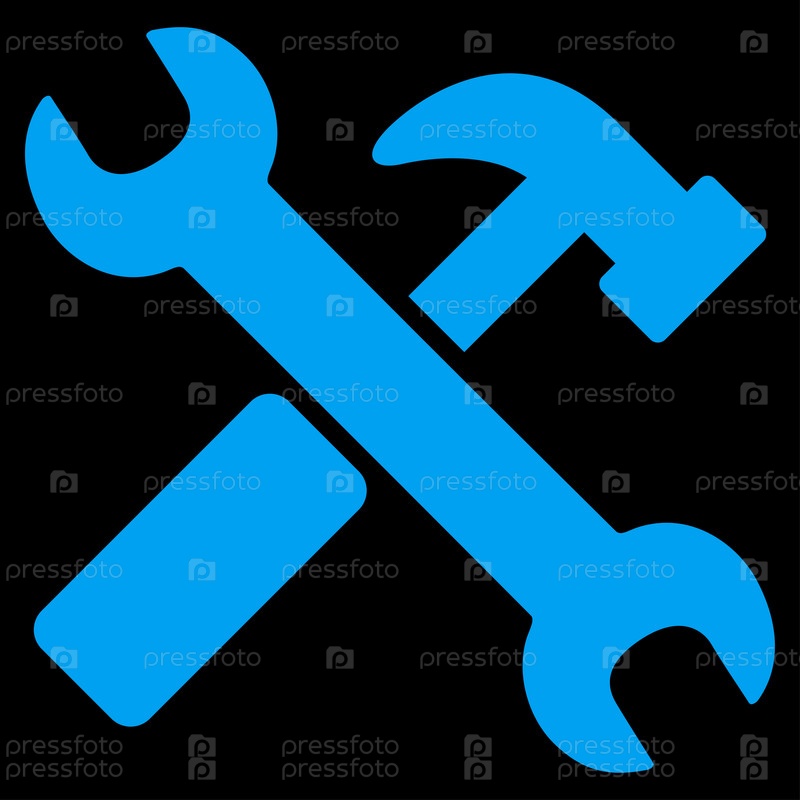Молоток и растровых инструментов. Стиль является плоской символ, синий цвет, закругленные углы, черный фон