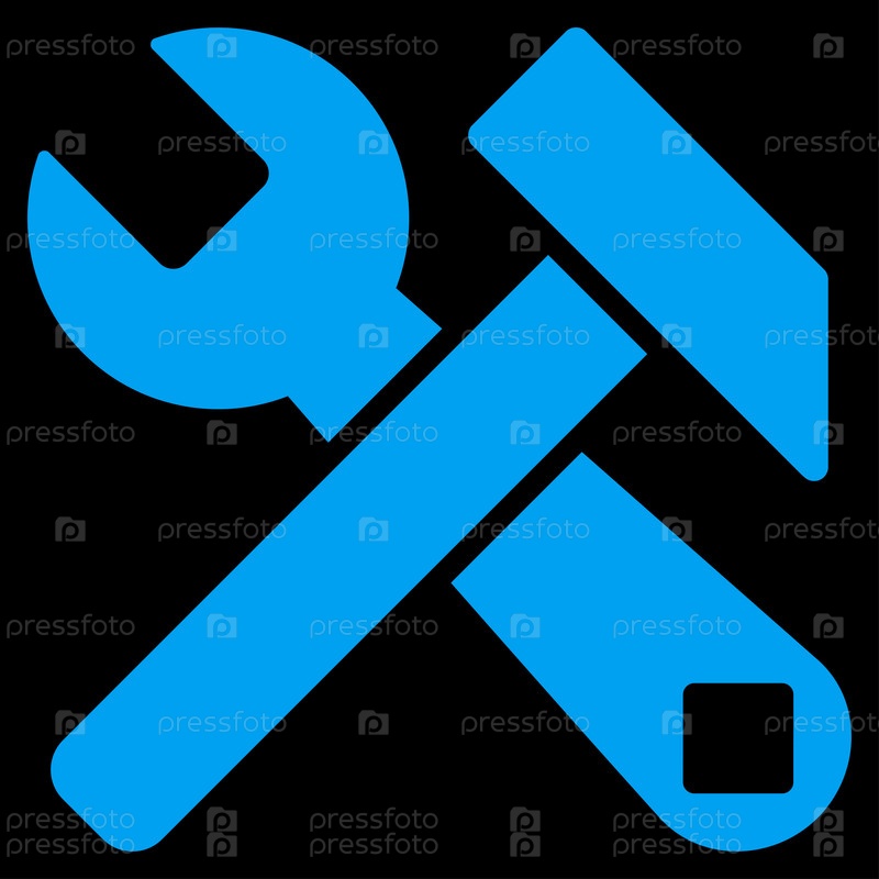 Молоток и растровых инструментов. Стиль является плоской символ, синий цвет, закругленные углы, черный фон