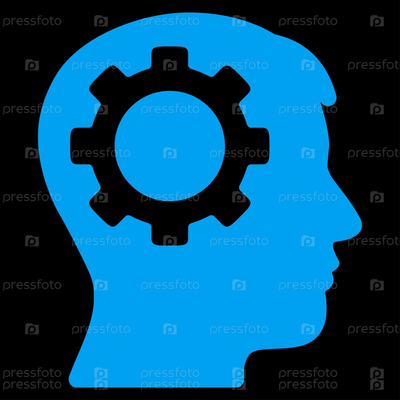 Интеллект растровых значок. Стиль является плоской символ, синий цвет, закругленные углы, черный фон