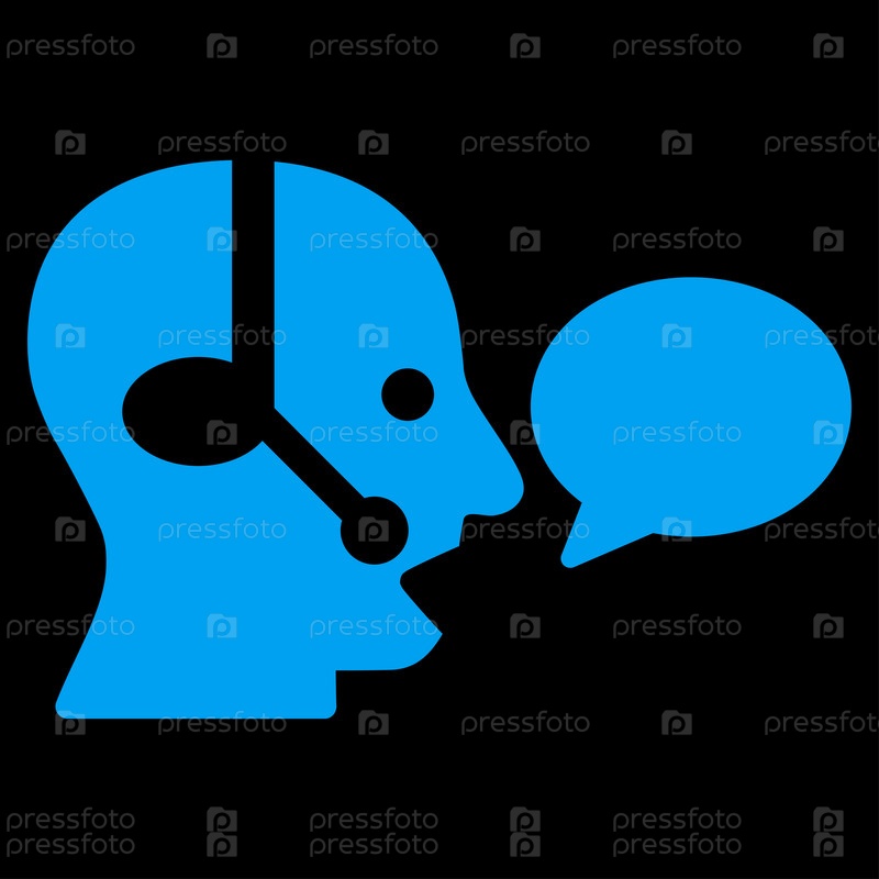 Значок оператора сообщение растров. Стиль является плоской символ, синий цвет, закругленные углы, черный фон