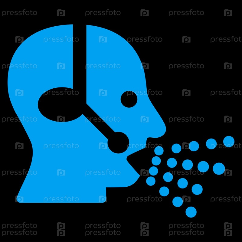 Значок оператора речи растров. Стиль является плоской символ, синий цвет, закругленные углы, черный фон