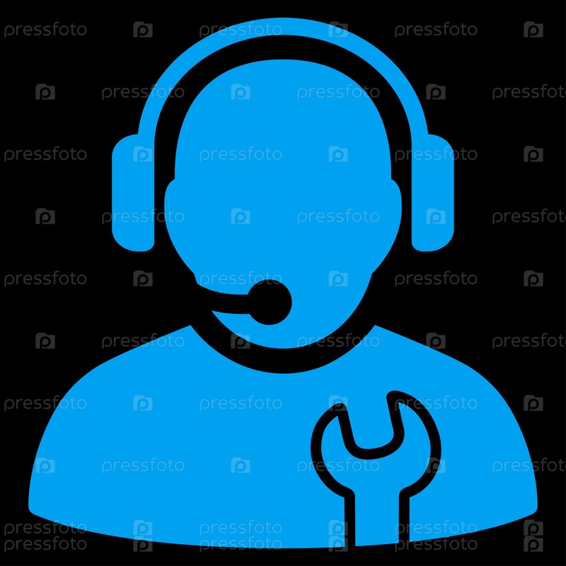 Значок оператора службы растров. Стиль является плоской символ, синий цвет, закругленные углы, черный фон