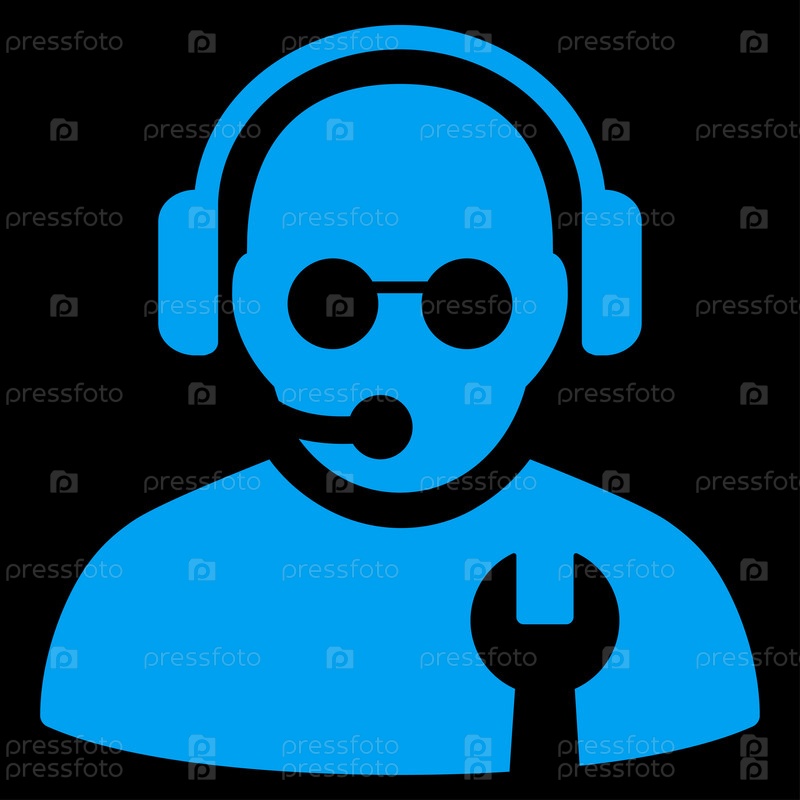 Значок оператора службы растров. Стиль является плоской символ, синий цвет, закругленные углы, черный фон