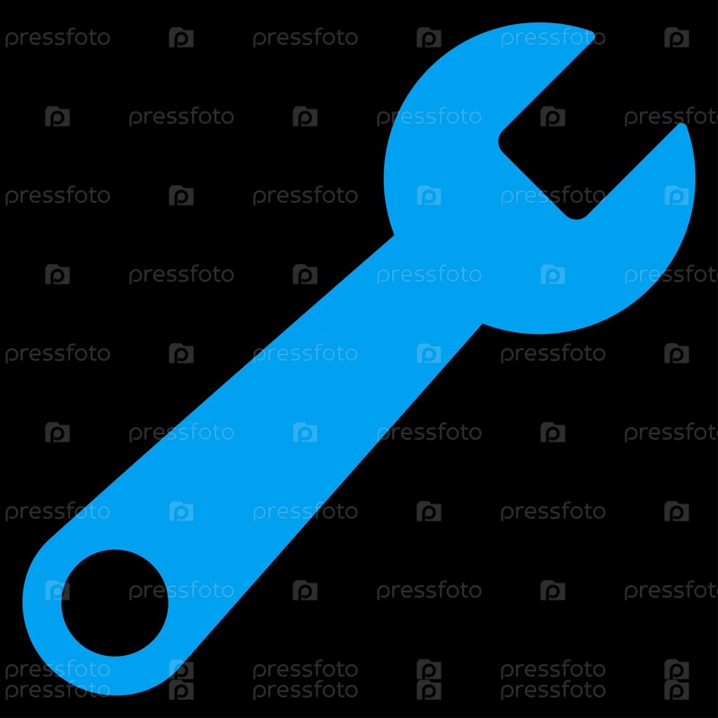 Растровые значок гаечного ключа. Стиль является плоской символ, синий цвет, закругленные углы, черный фон
