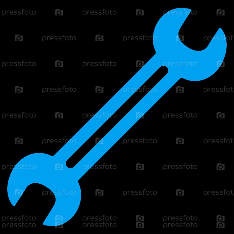 Растровые значок гаечного ключа. Стиль является плоской символ, синий цвет, закругленные углы, черный фон