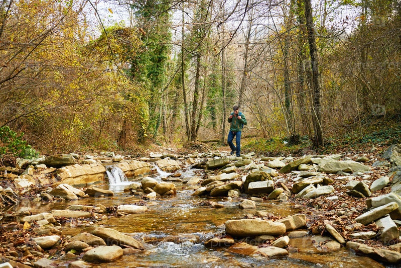 Пересекя речку на камнях