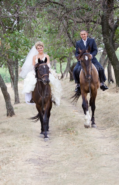 Невеста и жених на лошадях