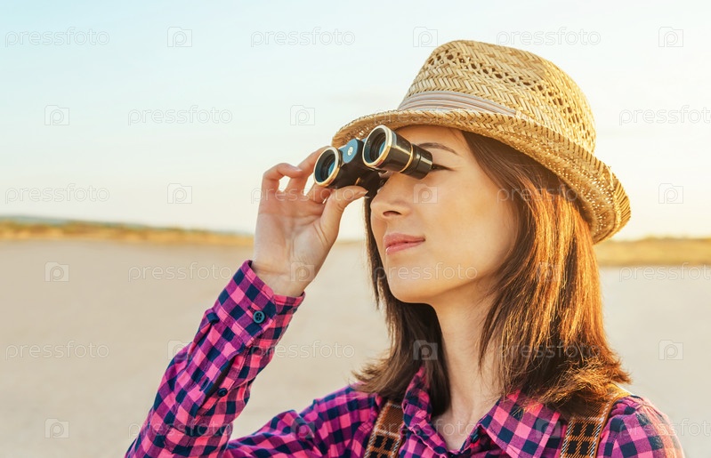 Девушка смотрит в бинокль