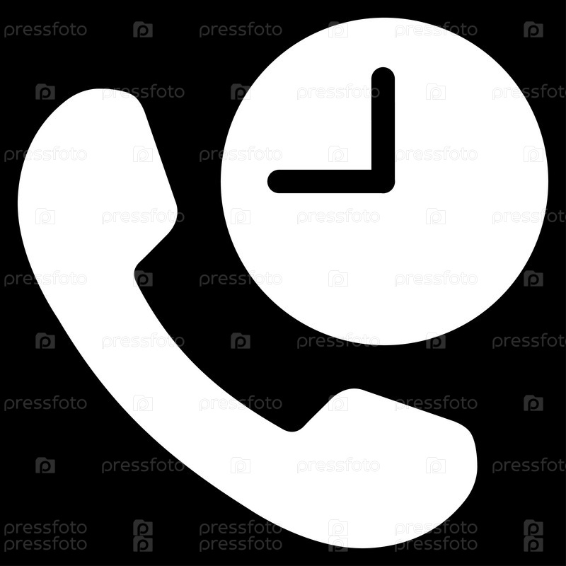 Значок телефона время растров. Стиль является плоской символ, белый цвет, закругленные углы, черный фон