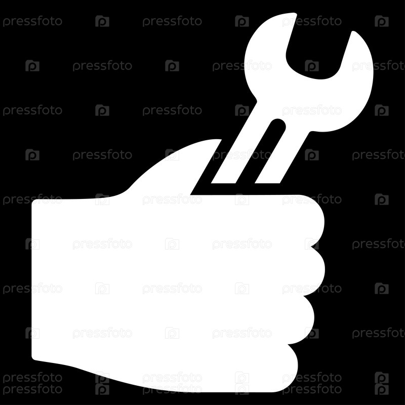 Значок службы руки растров. Стиль является плоской символ, белый цвет, закругленные углы, черный фон