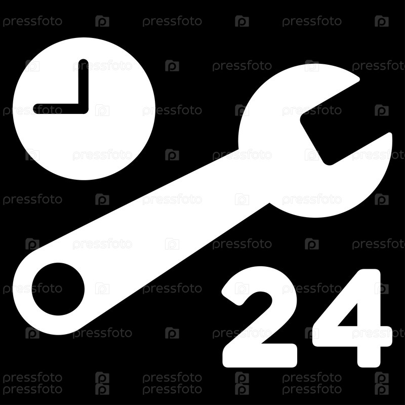 Сервисные часы растровых значок. Стиль является плоской символ, белый цвет, закругленные углы, черный фон