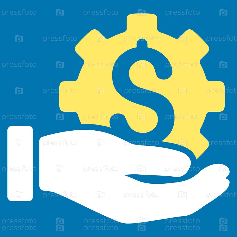 Развитие службы растровых значок. Стиль является биколор плоский символ, желтого и белого цвета, закругленные углы, синий фон