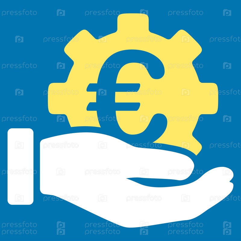 Евро службы развития растровых значок. Стиль является биколор плоский символ, желтого и белого цвета, закругленные углы, синий фон