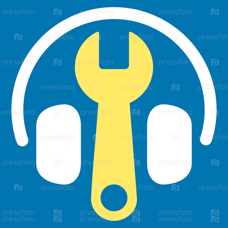 Гарнитура параметры растровых значок. Стиль является биколор плоский символ, желтого и белого цвета, закругленные углы, синий фон