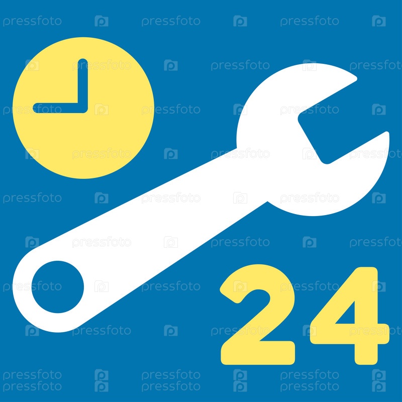 Сервисные часы растровых значок. Стиль является биколор плоский символ, желтого и белого цвета, закругленные углы, синий фон