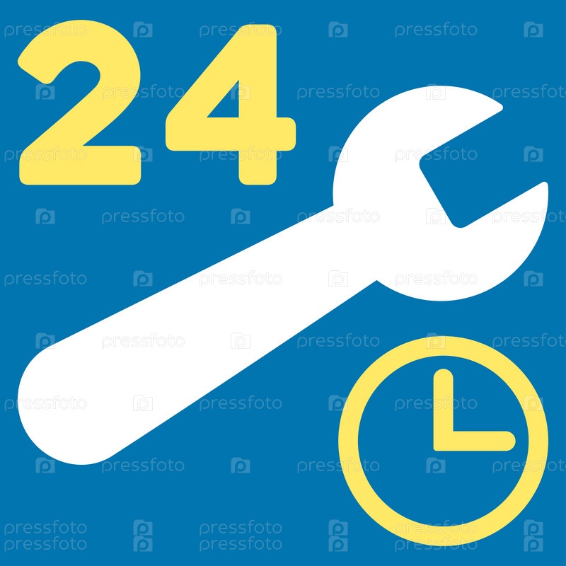 Сервисные часы растровых значок. Стиль является биколор плоский символ, желтого и белого цвета, закругленные углы, синий фон