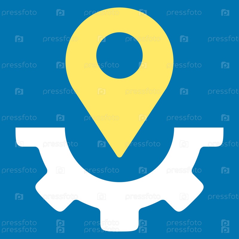 Значок службы маркер растровые. Стиль является биколор плоский символ, желтого и белого цвета, закругленные углы, синий фон