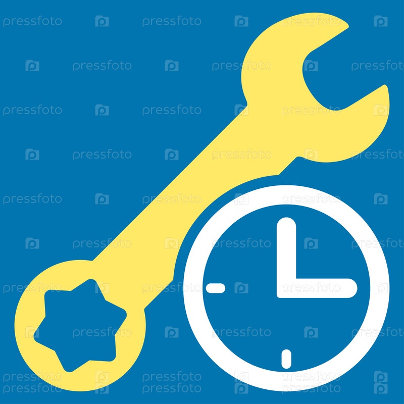 Время обслуживания растровых значок. Стиль является биколор плоский символ, желтого и белого цвета, закругленные углы, синий фон