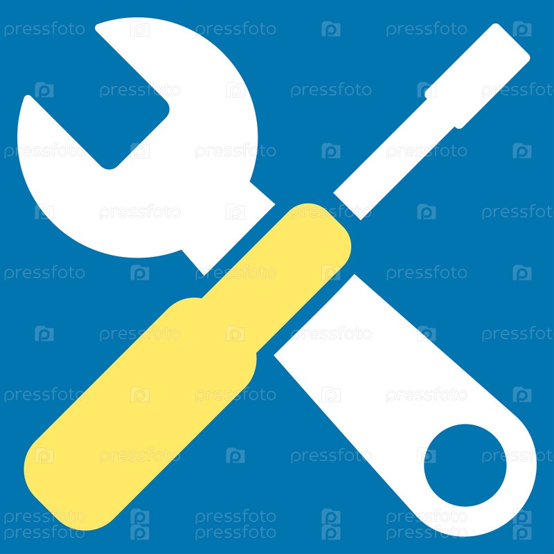 Значок растровых инструментов. Стиль является биколор плоский символ, желтого и белого цвета, закругленные углы, синий фон