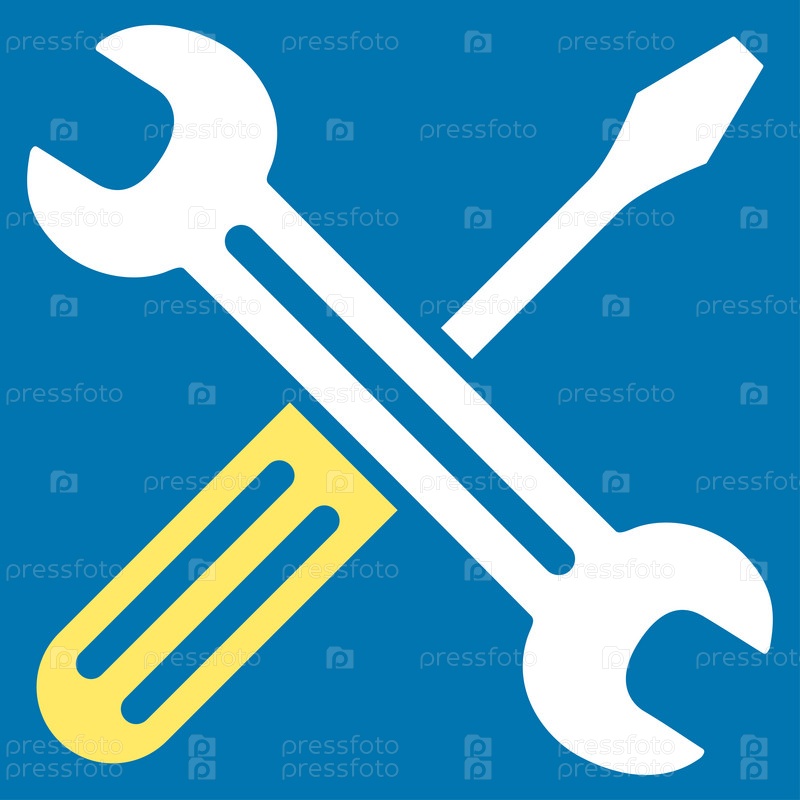 Гаечный ключ и отвертку растровых значок. Стиль является биколор плоский символ, желтого и белого цвета, закругленные углы, синий фон