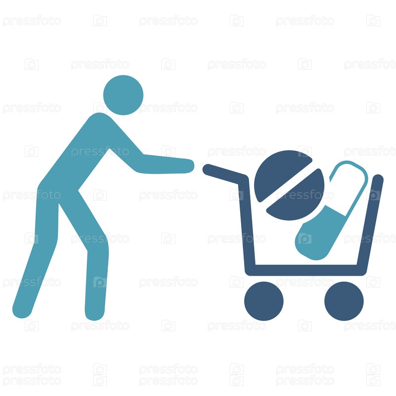 Наркотики магазинов значок глифов. Стиль является биколор плоский символ, голубой и синий цвета, закругленные углы, белый фон