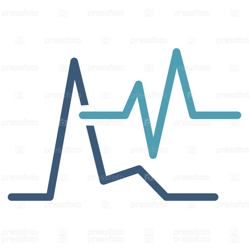 ЭКГ значок глифов. Стиль является биколор плоский символ, голубой и синий цвета, закругленные углы, белый фон